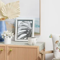 Present your travel photos or family photos in this 9.5″ x 11.5″ Matted To 8″ x 10″ Thin Profile Float Single Image Frame – Threshold™. This rectangular picture frame featuring a sturdy construction offers a mixed appeal to any table surface. Supported on a contrasting stand for standing stability, this freestanding photo frame can be displayed vertically on a variety of flat surfaces. The glass front helps protect your photo from dust, moisture and damage. Place this piece on your shelf, desk, side table or mantel for a versatile display anywhere in your home.