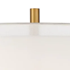 - Sleek brass and black finishes. Metal construction base and pole. Double layer linen and sheer drum shade. Round black riser. 8-foot long silver cord.