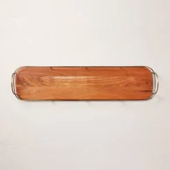 32″ Wooden Decorative Tray With Metal Trim Brown/Brass – Hearth & Hand™ With Magnolia